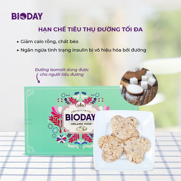 Nếu đang xây dựng khẩu phần ăn lành mạnh nhưng vẫn chưa biết chọn gì cho bữa ăn phụ, Bánh hạt nướng BIODAY bổ sung canxi hữu cơ đường Isomalt là lựa chọn hoàn hảo cho bữa xế của cả gia đình, với thành phần dinh dưỡng nâng cao sức khỏe và duy trì tuổi thọ: